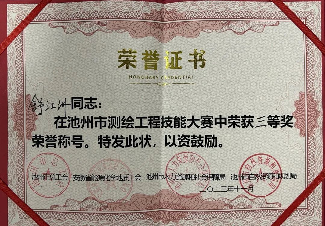 日前,池州市首屆測繪工程技能大賽圓滿落幕,全市22家測繪單位的15支隊(duì)伍以及20余名個(gè)人賽選手參加。最終,集團(tuán)所屬池州市規(guī)劃勘測設(shè)計(jì)總院有限公司在此次技能大賽獲得團(tuán)體總成績第一、個(gè)人成績第一的佳績。