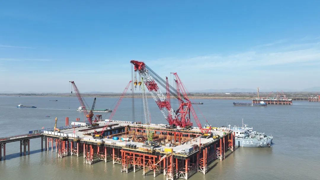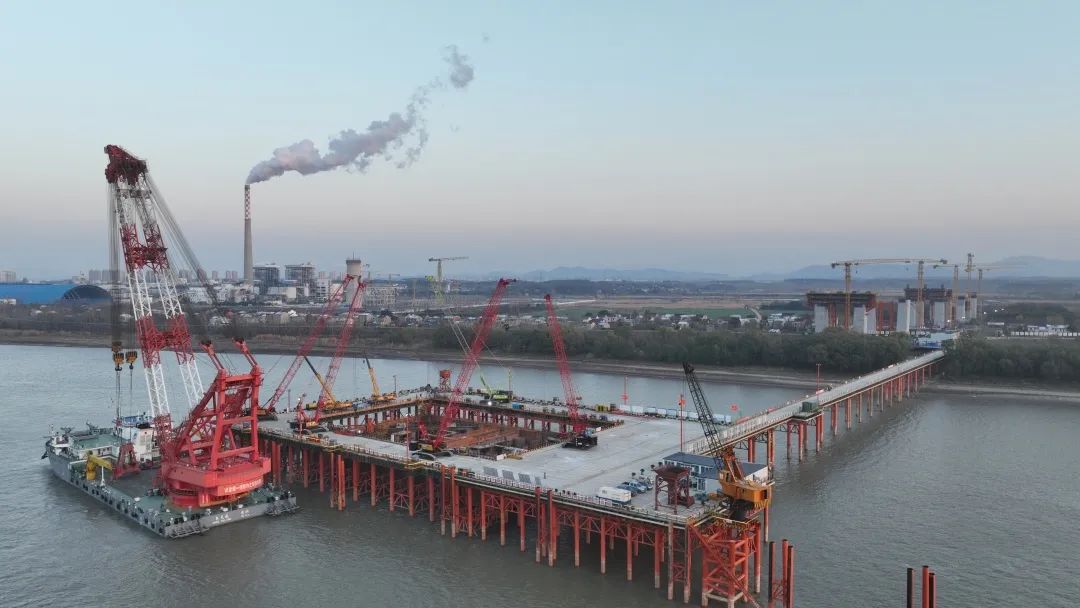 12月26日下午,在長江池州段離南岸大堤約380米處的江中施工點(diǎn),隨著池州長江公鐵大橋4號墩圍堰內(nèi)最后一方封底混凝土的灌入,由集團(tuán)承建的池州長江公鐵大橋4號主墩圍堰封底順利完成,標(biāo)志著池州長江公鐵大橋即將進(jìn)入主墩承臺施工階段,為池州長江公鐵大橋主塔施工打下堅(jiān)實(shí)基礎(chǔ)。