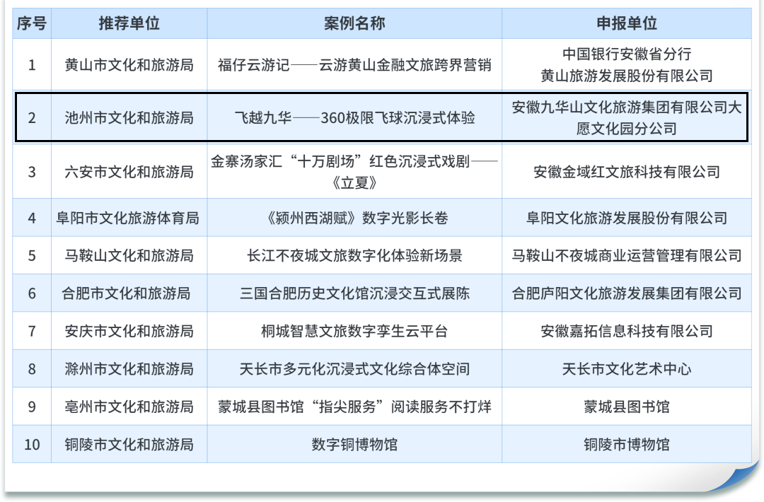 12月26日,安徽省文化和旅游廳公布2023年數(shù)字文旅創(chuàng)新實(shí)踐十佳案例名單,集團(tuán)所屬大愿文化園分公司申報(bào)的項(xiàng)目“飛越九華——360極限飛球沉浸式體驗(yàn)”榜上有名?。?!