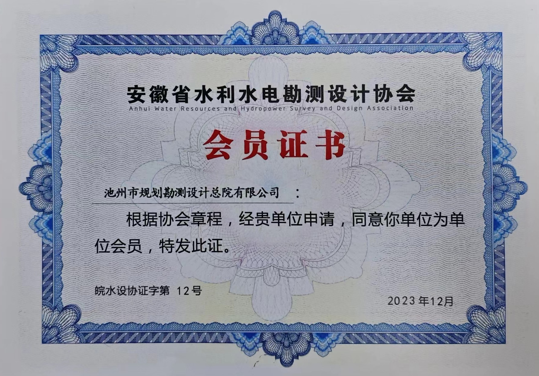 2023年12月27日,安徽省水利水電勘測設計協(xié)會第三屆會員大會在合肥召開,省民政廳、省水利廳、中國水利水電勘測設計協(xié)會等單位領(lǐng)導蒞臨指導,全省40多家會員單位代表參加。會議選舉產(chǎn)生了新一屆協(xié)會理事、監(jiān)事單位,池州市規(guī)劃勘測設計總院有限公司新當選為第三屆理事會理事單位,總院黨支部副書記、副總經(jīng)理左江同志當選為第三屆理事會理事。