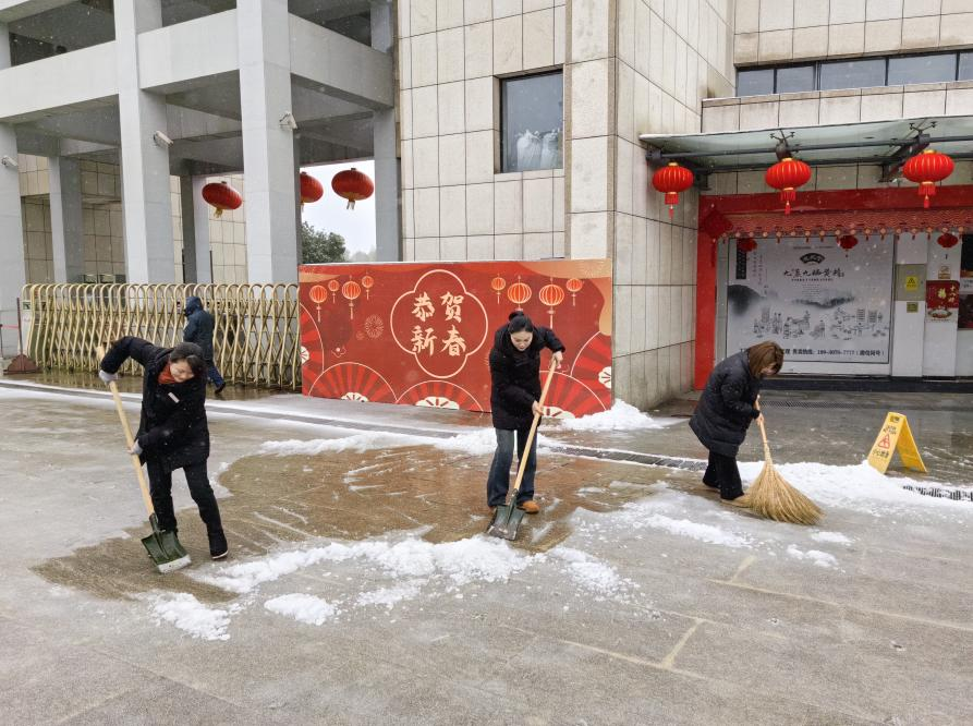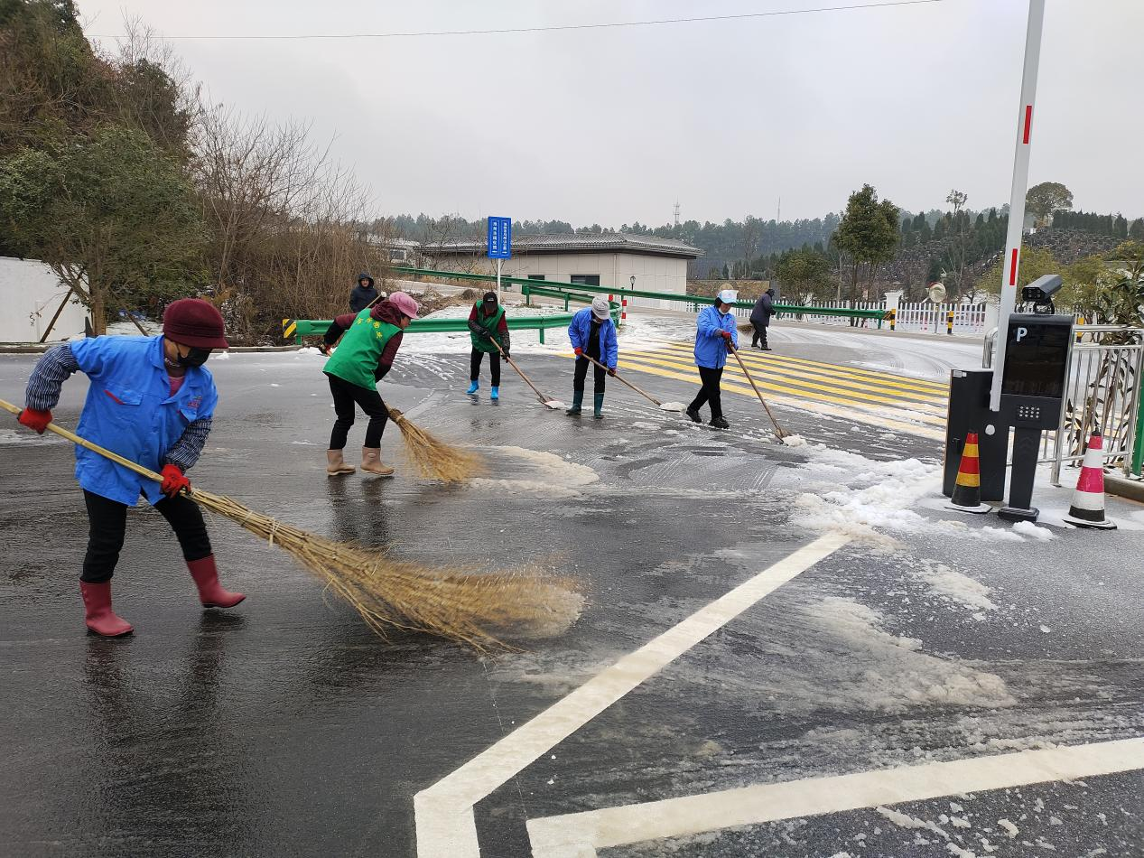 公司組織全體員工迅速投入掃雪除冰行動,安排專人在001縣道小沖口下坡段多次拋灑融雪劑,重點對坡道路面加強清雪除冰工作。全體干部職工,按照下雪應(yīng)急預(yù)案提前劃分好區(qū)域,對各區(qū)域道路的積雪進(jìn)行清掃。經(jīng)過奮力清雪除冰,通往園區(qū)和館內(nèi)道路積雪積冰情況得到有效緩解。