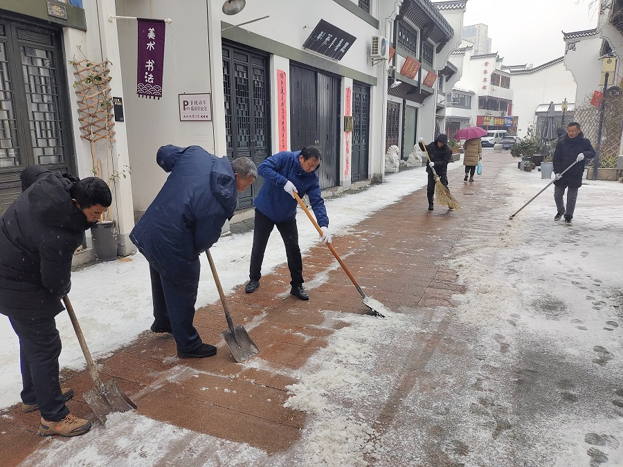 2月23日上午,孝肅街公司第一時間組織黨員和職工紛紛走上街區(qū)開展掃雪除冰活動。寒風(fēng)陣陣,并沒有阻擋支部黨員干部和職工掃雪除冰的熱情。經(jīng)過2個多小時連續(xù)的奮力清掃,將街區(qū)人行道積雪打掃干凈,讓街區(qū)道路變得安全暢通,為市民群眾的安全出行帶來了便捷,更是傳遞了一份溫暖和正能量。