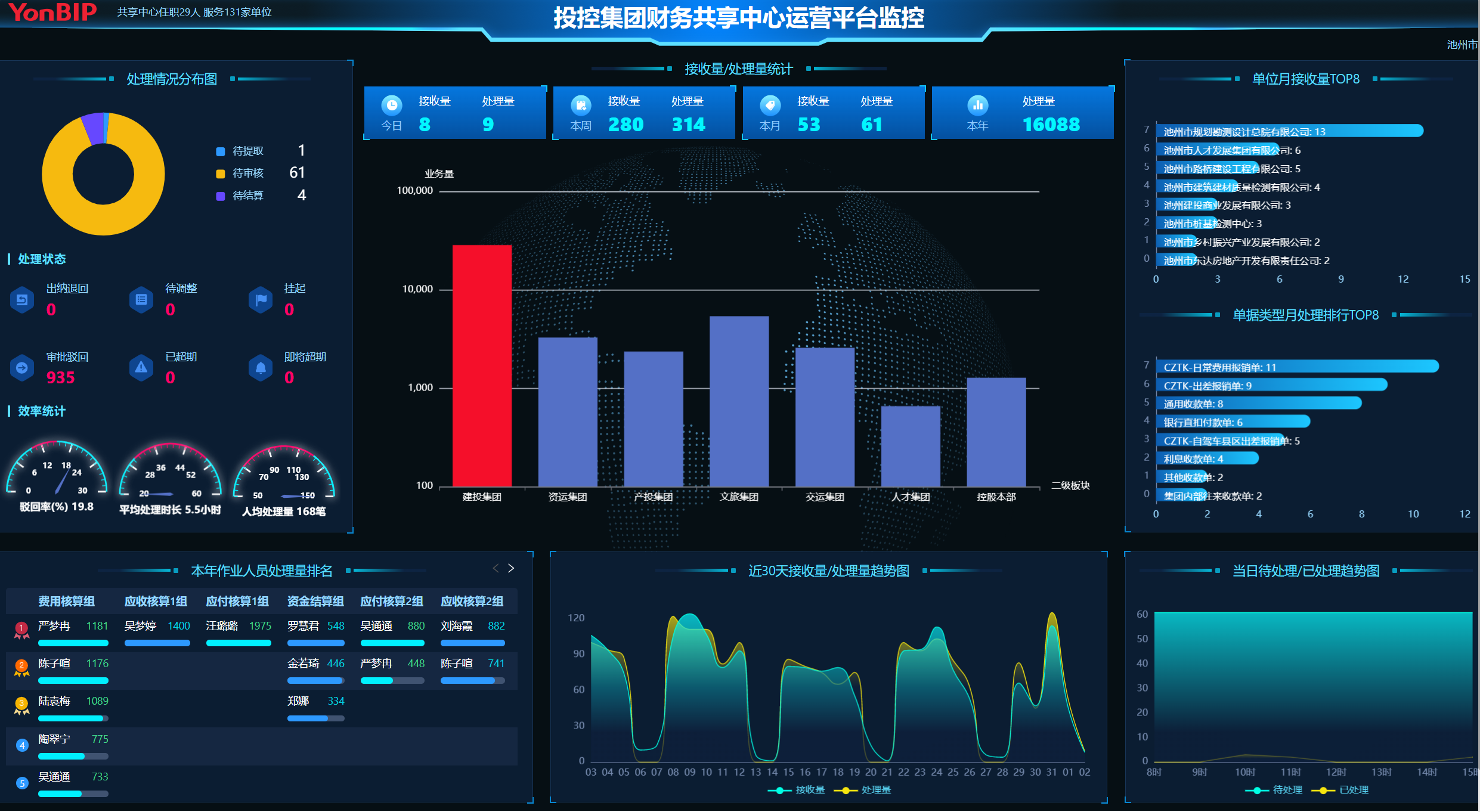 集團(tuán)財(cái)務(wù)共享建設(shè)動態(tài)、可視的智慧運(yùn)營大屏,實(shí)時(shí)展示財(cái)務(wù)數(shù)據(jù)和關(guān)鍵指標(biāo),對集團(tuán)財(cái)務(wù)風(fēng)險(xiǎn)進(jìn)行精準(zhǔn)的分析和研判;將標(biāo)準(zhǔn)、管控制度、管理規(guī)范嵌入共享系統(tǒng),依托系統(tǒng)控制全面預(yù)算,實(shí)施銀行賬戶系統(tǒng)管控,運(yùn)用資金預(yù)算與賬戶零余額“雙控”模式,形成有效的系統(tǒng)預(yù)警機(jī)制和財(cái)務(wù)監(jiān)督機(jī)制,實(shí)現(xiàn)風(fēng)險(xiǎn)管控預(yù)警功能,提升風(fēng)險(xiǎn)管控能力。
